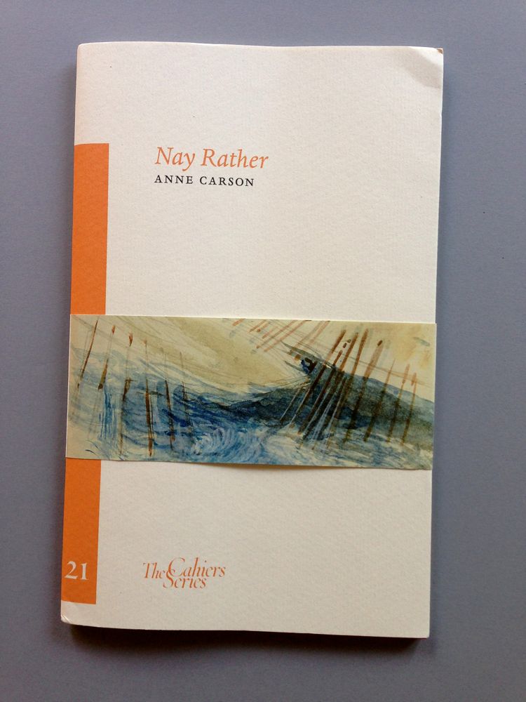 Ingen författare nu har starkare inverkan på litteraturen just nu än Anne Carson, den spränglärda kanadensiskan som spränger alla litterära former. Dom två titlar som finns på svenska (i översättning av Mara Lee), Röd självbiografi och Makens skönhet, dyker upp lite varstans, ofta citerade. En av dom allra senaste är ett litet häfte som handlar om översättning, fast egentligen om litteraturen som förvaltare av katastrofen, interfolierat med kvasiantropologiska anteckningar om en folkspillra, kykladerna, och med illustrationer av en siciliansk konstnär, Lanfranco Quadrio.