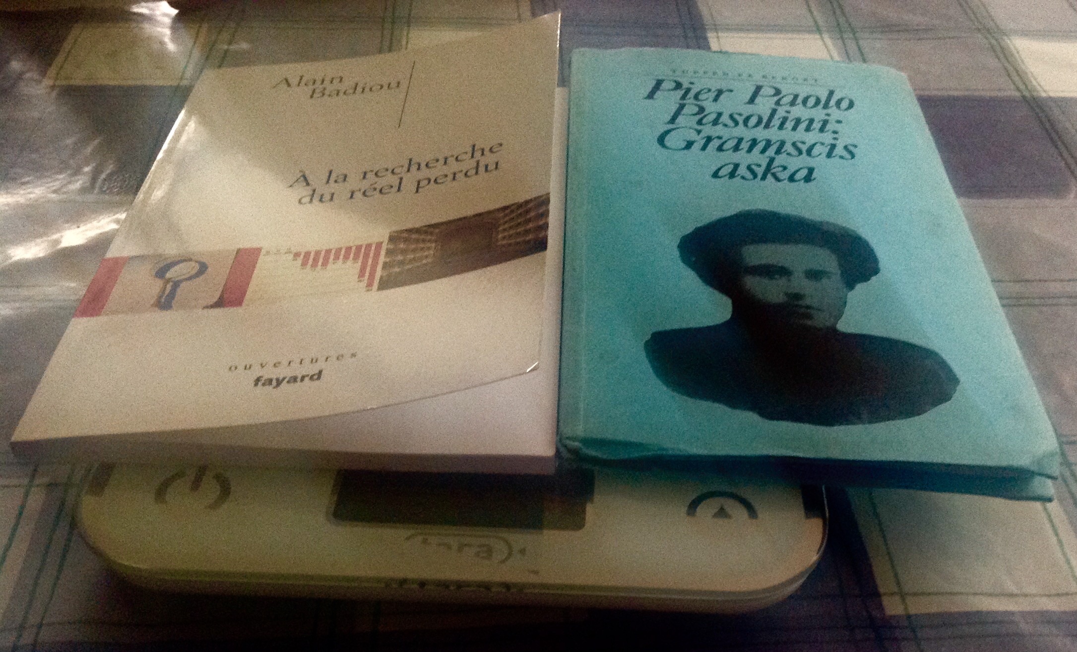 Utgångspunkten är Lacans begrepp “det reala” som avser allt som inte låter sig tänkas och som just därför har en intensiv påverkan på tillvaron. Huvudexemplet är den dikt från femtitalet där Pasolini mediterar vid den store kommunisttänkaren Gramscis grav, den som slutar (i Arne Lundgrens översättning):